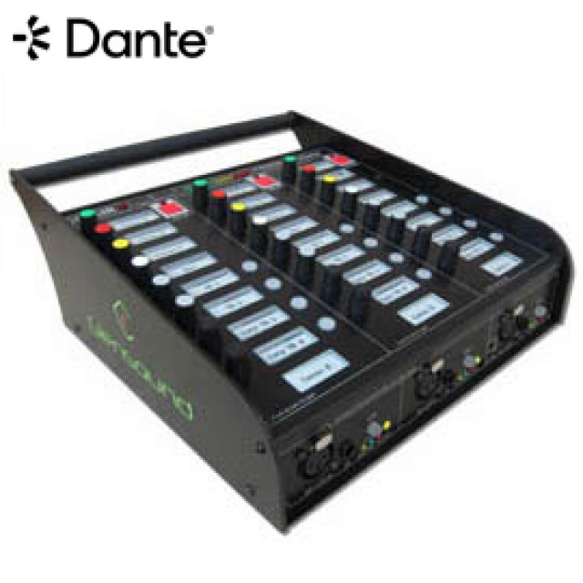 • Headphone mixer has 7 inputs supplied from the Dante network, plus the local input (sidetone)