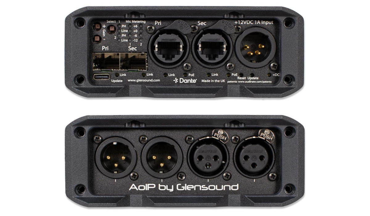 Also new in the Dark family is the Dark22M, a compact two in, two out device. With the same audio quality, network flexibility and power agility as the rest of the range, this adds return or confidence feeds, and the ability to mix and gain control on the device to tune performance to the situation. Like all Dark devices, it can be controlled over the network using the GlenController Windows app, or by any suitable device controller using UDP.