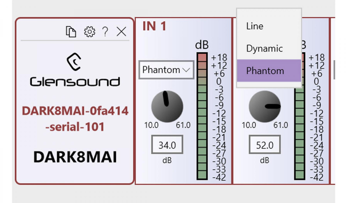 Control of the DARK8MAI was perfectly integrated into windows through the Windows 10 app store using GlenController. This allows remote level monitoring, input type select and most importantly, gain adjust. The performance was recorded onto two laptops - one Windows machine running Reaper, and another Mac running Logic.