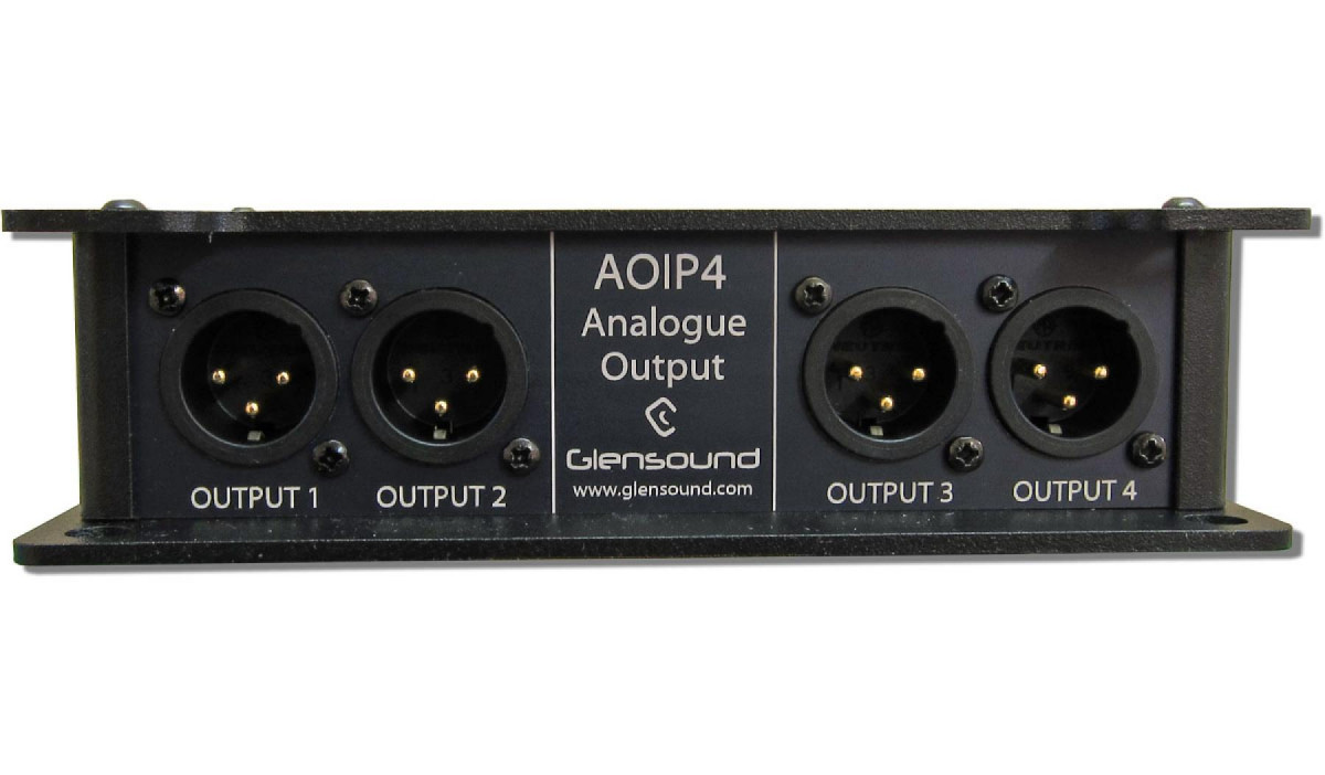 AoIP4O provides 4 balanced analogue audio Outputs from a Dante®/AES67 audio network.