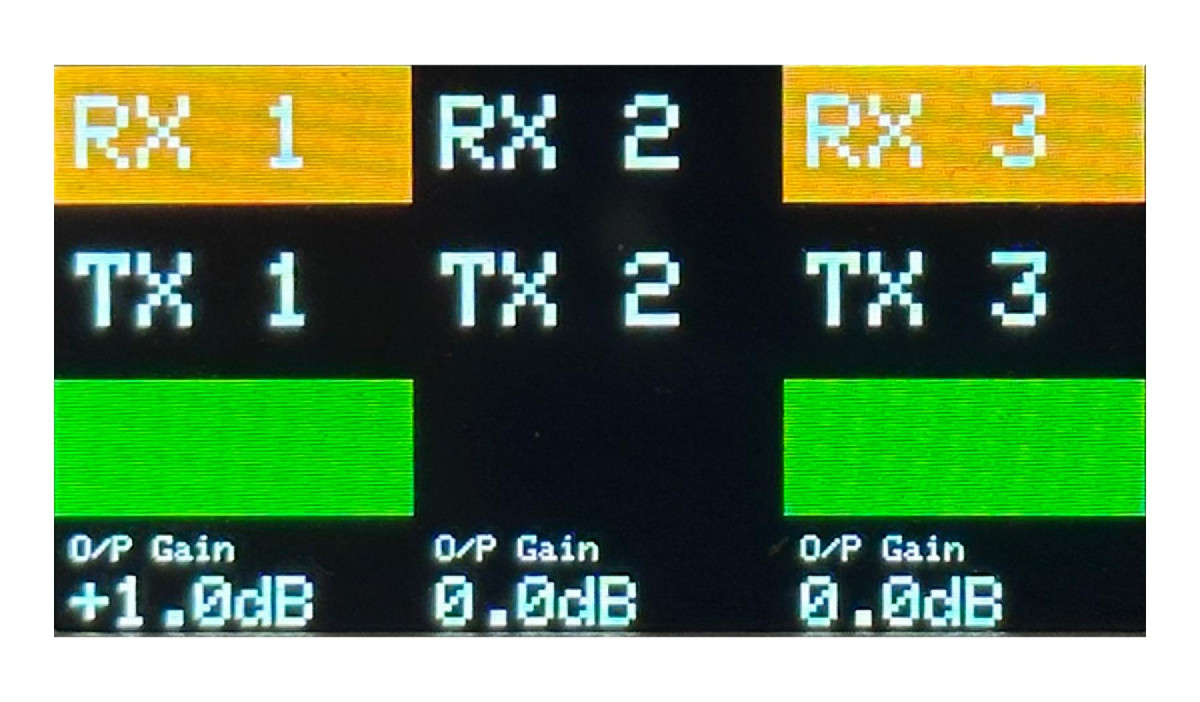 - Tapping up will turn the channel audio monitoring on/off. When audio monitoring is on, the background of the top line of the display will be orange.