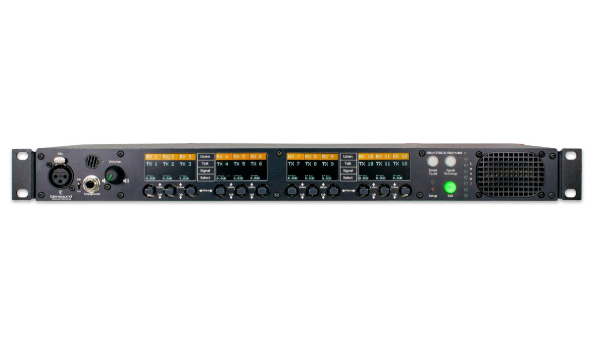 The Beatrice R12 MkII is the first of the second generation of Beatrice Intercom. It adds multiple display screens that allow you to see source and destination labels, taken directly from Dante Controller, along with a range of further status information. A 5 way lever control for each of the 12 channels allows for multi function talk and listen options, and immediate adjustment of incoming audio levels. There are also severeal new audio dynamic functions never before seen on Glensound Intercom, resulting in the most complete unit of its type yet.