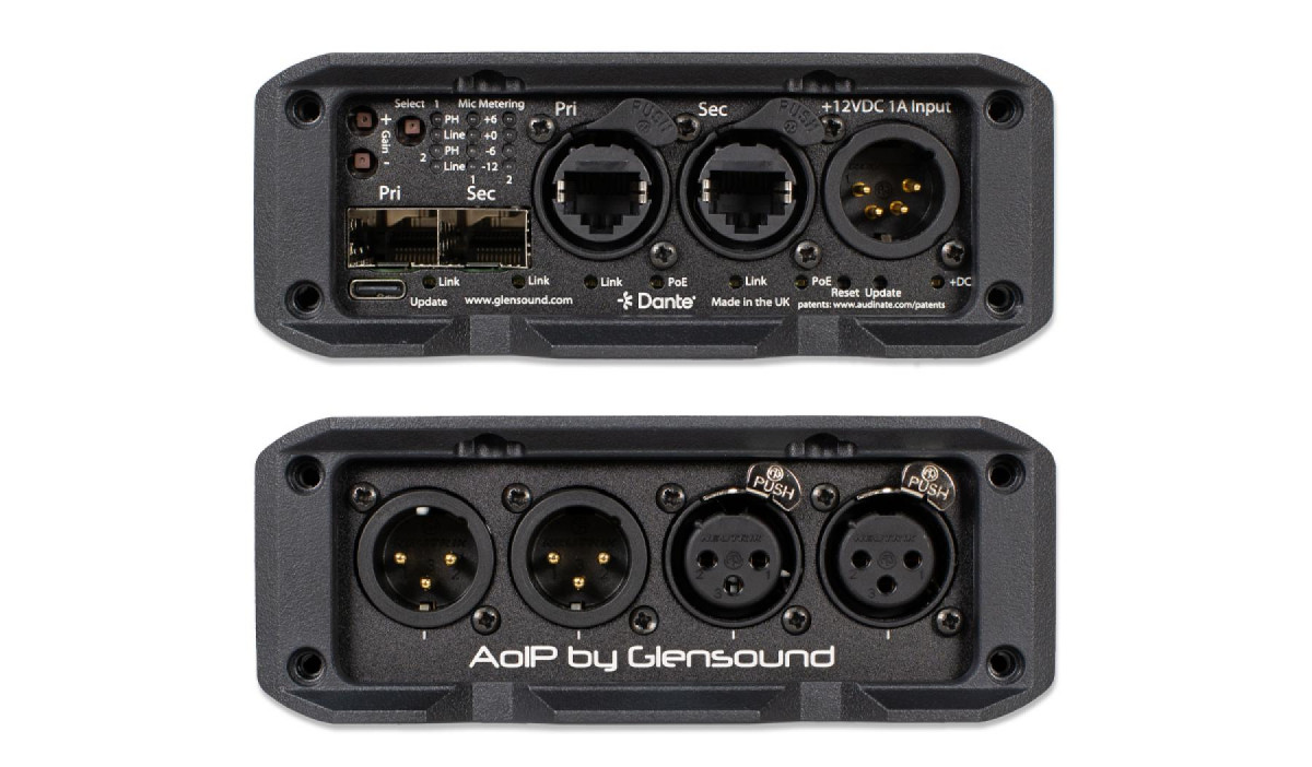 The DARK 22M is a bi-directional network audio interface between 2 analogue sources and either a Dante or Ravenna network. Connections are standard via 2 x XLR in and 2 x XLR out.