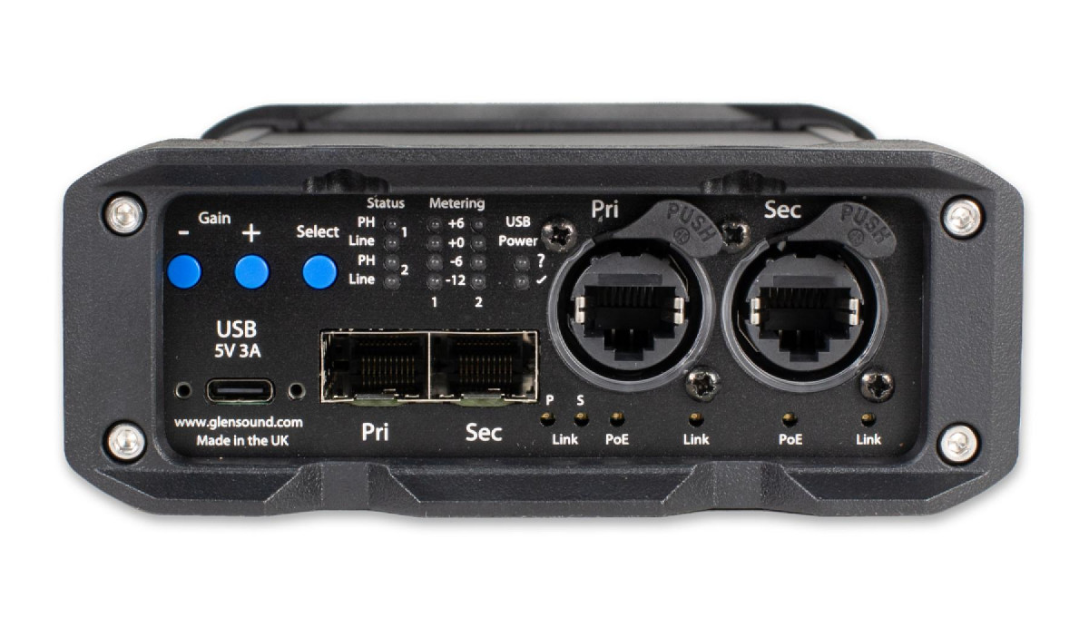 Where the DARK22M really sets itself apart is in audio performance. You see, it started life as the DARK8MAI – an 8 channel mic amp. This means that the resources of the DARK8MAI are still available – namely an 8 channel analogue to digital converter. Glensound's design engineer Alex Clarke was able to utilise these ADC channels in a rather clever way. By sending each input equally across 4 x ADC inputs, then combining them in the ADC. When you divide by four, you end up with the same level, but the noise cancels out, resulting in a much improved signal to noise ratio and dynamic range. This has resulted in the mic inputs on the DARK 22M being just about the cleanest and brightest of any network mic amp available.