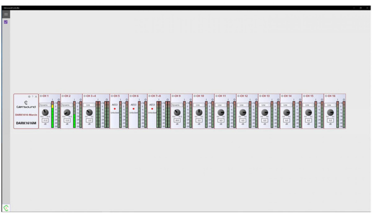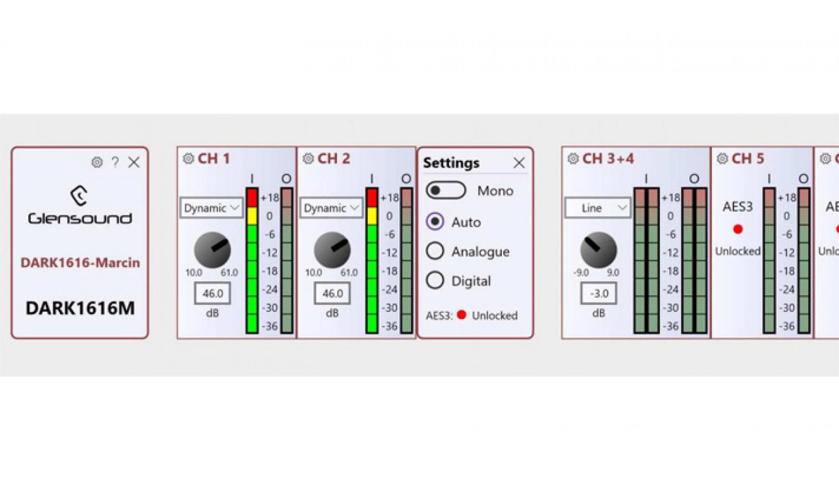The analogue inputs are switchable between mic, line and 48V phantom power. These are controllable across the network via the Dark Controller Windows 10 app. This allows remote control by an engineer of the input selection, gain adjust and input on/off control. A meter is also provided for each input on the app, to monitor the input level and help with setting the gain.
