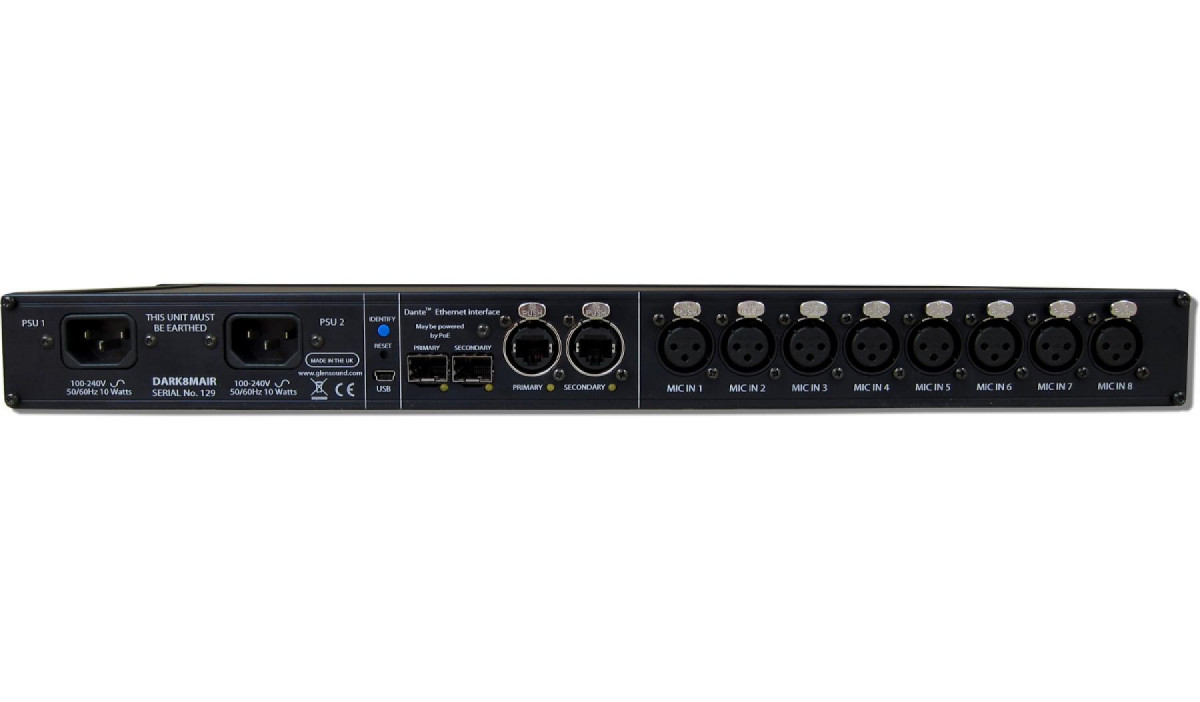When using the Dante protocol it is possible to set the DARK8MAIR to have a fully redundant network interface whereby a completely glitch free automatic redundant audio network link is provided across 2 of the network interfaces.