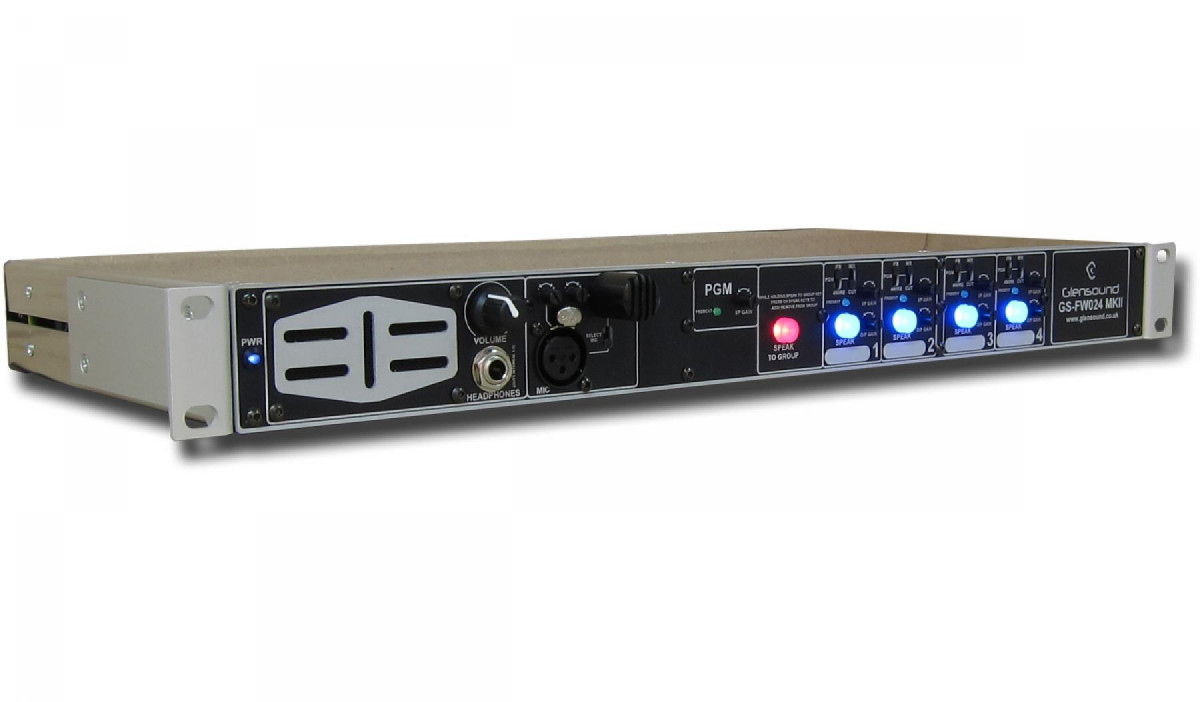 A 1u 19” rack unit containing 4 separate 4 wire/IFB circuits. The GS-FW024 MKII is the next generation on from the very popular original GS-FW024 and is one of our top of the range of extensive 4-wire talkback units. Glensound has been designing and making 4-wire talkback units for more than 35 years and the GS-FW024 MKII builds on past experience to provide a highly reliable and comprehensively specified unit which is also hugely versatile and is ideal for the communication hub of small OB vans and small studios.