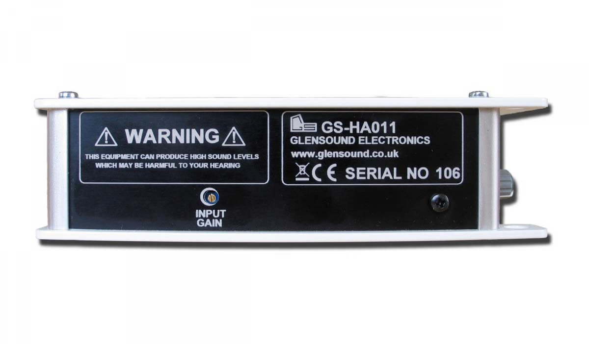 Audio input is transformer balanced with recessed adjustable gain control. Input connection is via XLR with a loop through XLR output. Two headphone sockets are offered, 1 on 6.35mm and the other on 3.5mm. These are wired tip & sleeve to allow connection of regular stereo headphones (with audio on both ears) or a single ear piece. There is a volume control for adjusting level to 32-1000ohm impedance headphones.
