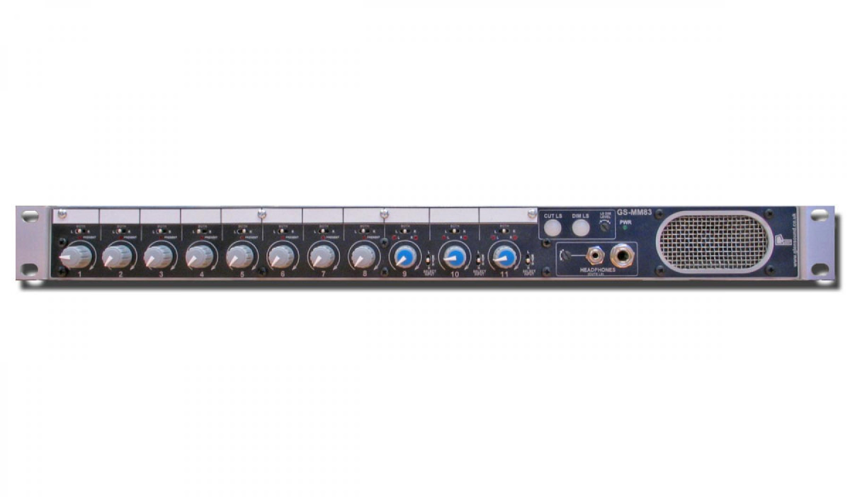 The Glensound GS-MM83 is an 8 mono and 3 stereo input audio monitor 1u subrack (sometimes referred to as a pre hear unit). The GS-MM83 allows production personnel to control and listen to various programme and communication sources.