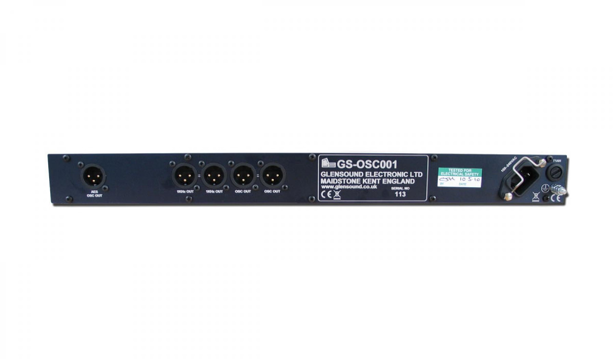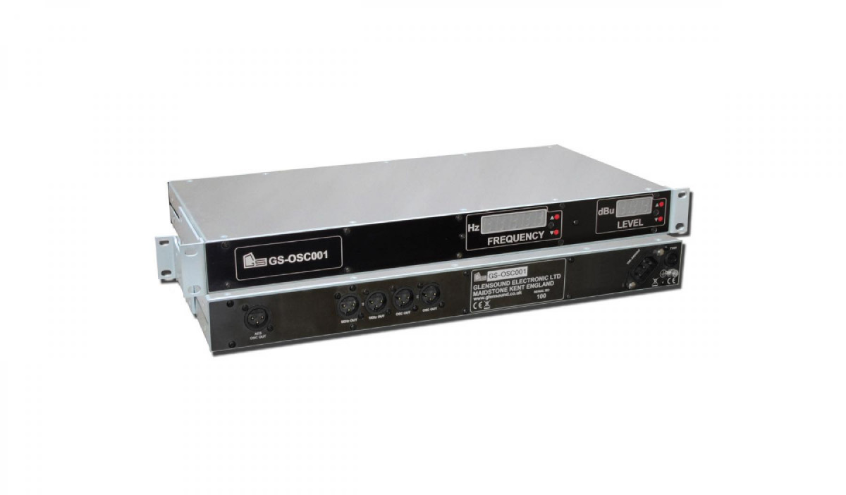 A variable frequency tone generator for ident and general line up use. There are 2 fixed 1kHz analogue reference outputs, and 2 analogue outputs of the selected frequency. There is also a digital AES output of the selected frequency.