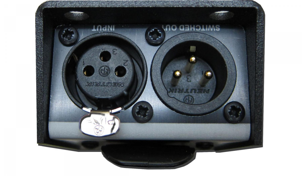 The GS-SW005 is a small belt pack unit that provides a 3 position lever switch for silently muting the input signal to the output. The switch is momentary in one direction and locks in the other. The switching process is silent so it can be used for on-air use on microphones and line level signals. There is a single XLR for input, and another for output.