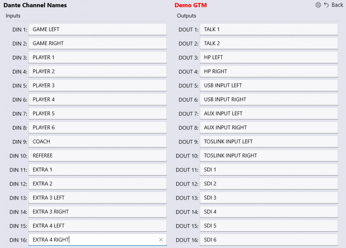 Game input sources Stereo Aux, USB, Optical, Dante, 3G-SDI
