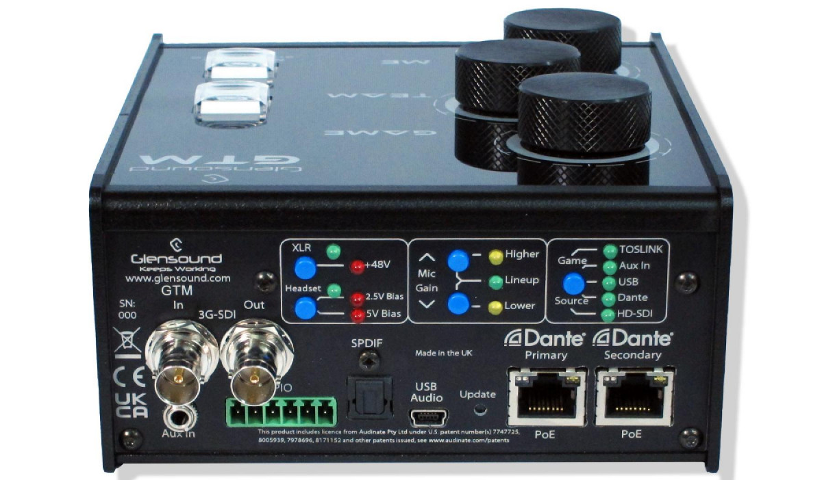 There is a multi input, Dante/AES67 mixer controllable via GlenController that sets the levels of all audio being mixed to the GTM TEAM pot of 1 of 7 teams. Typically this is just a mono mix of the 6 other team members but there are also further sources available: