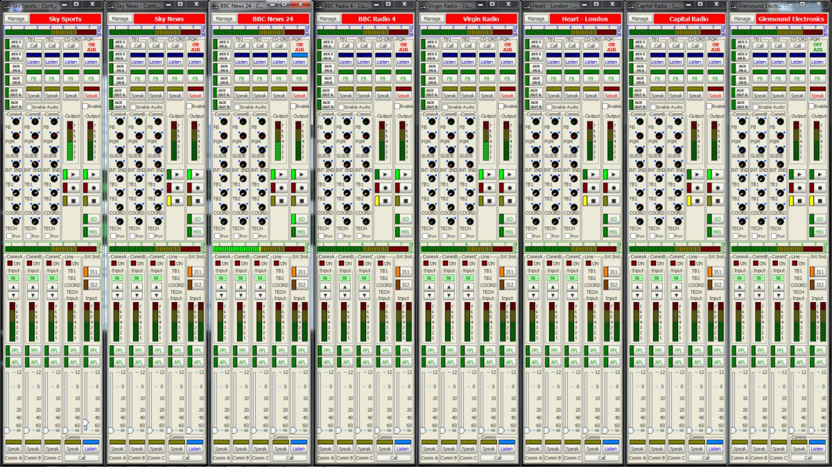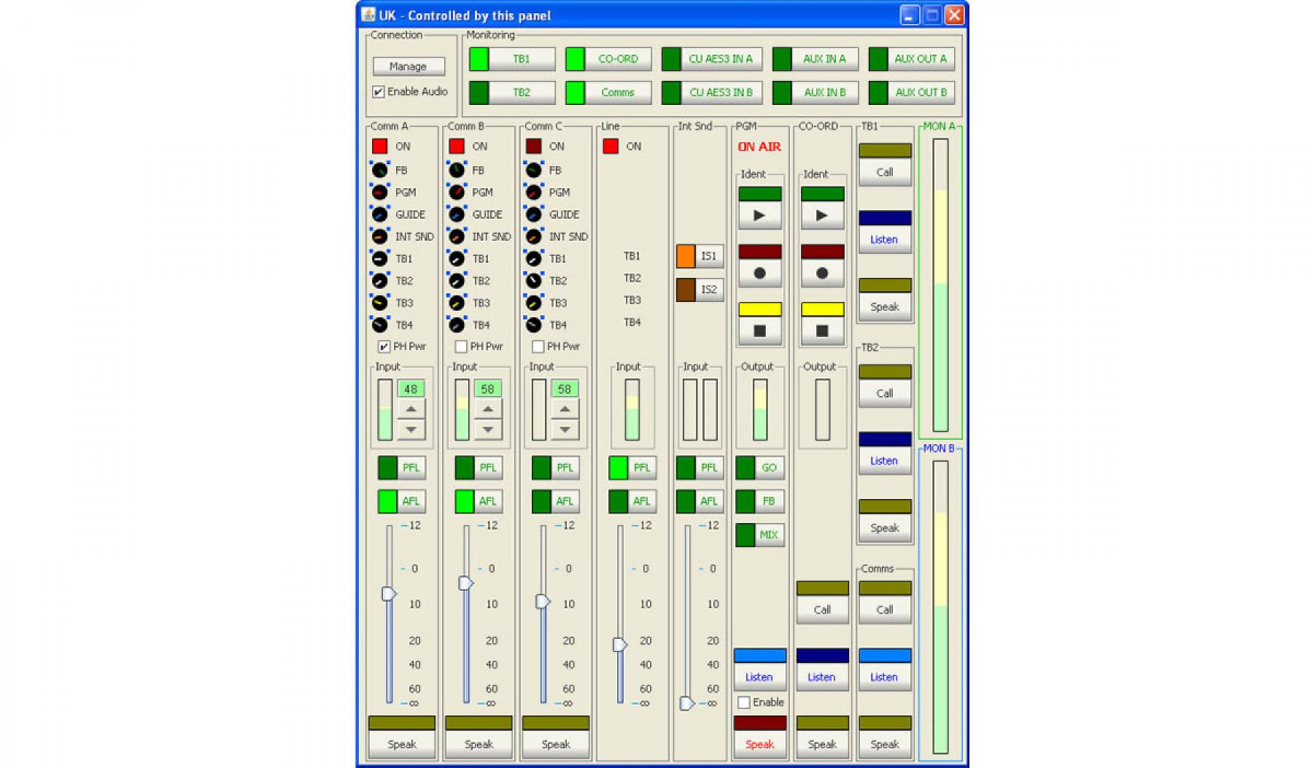 • Shows status of monitoring, mix and output