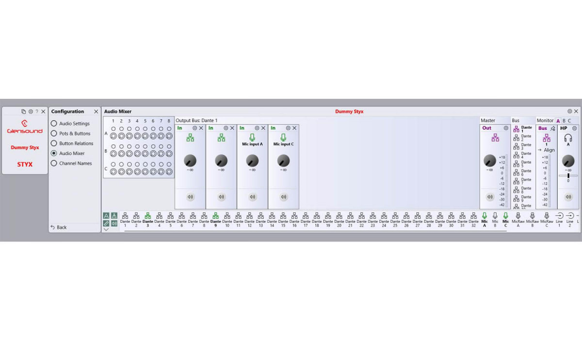 Styx GlenController Audio Mixer Beatrice B4 Rear 5 Pin Female Headset BAN NSA16 Top BAN FW008 Angle BAN