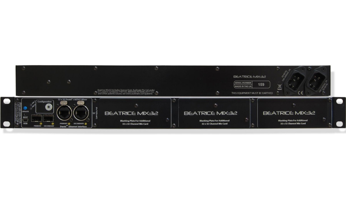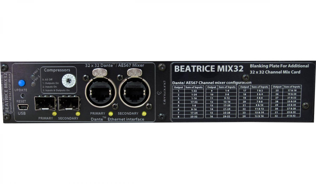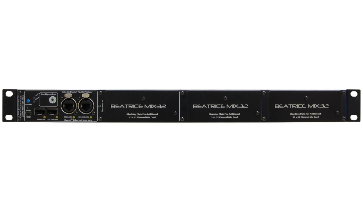 Each BEATRICE MIX32 can house up to 4 independent 32 x 32 channel mixers.