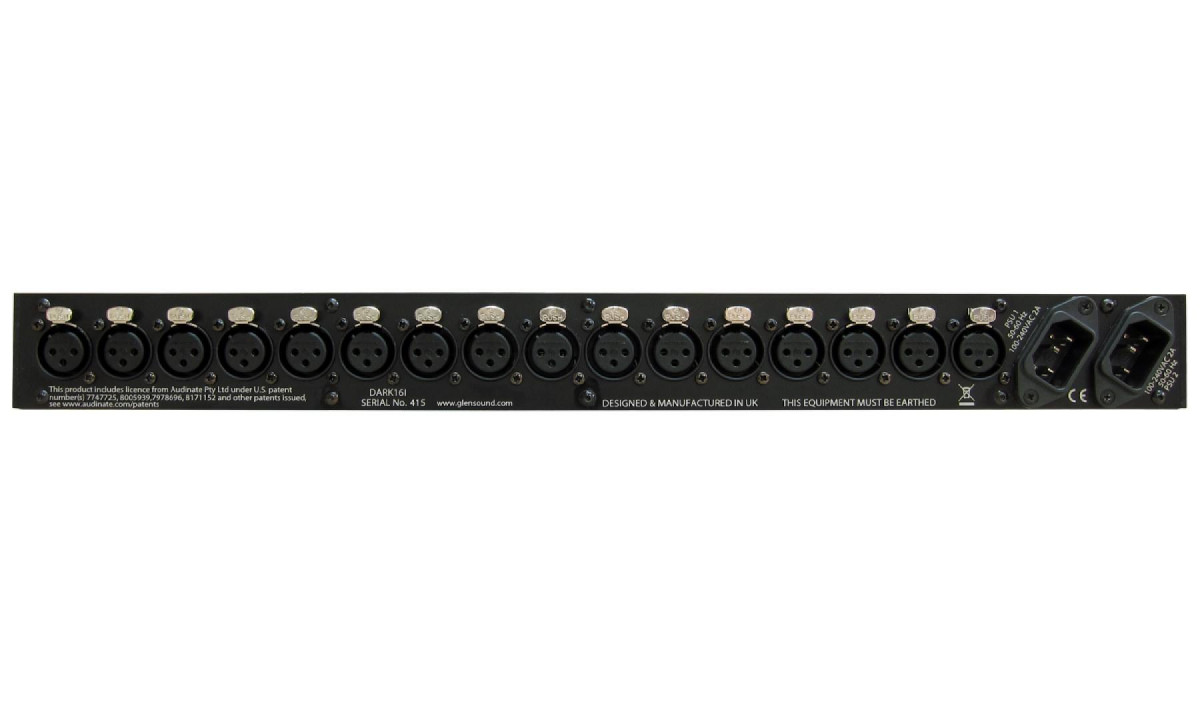 The DARK16I has 16 audio inputs to the network. Each input is on its own Neutrik 3 pin XLR socket. The inputs are electronically balanced and can be connected to unbalanced outputs if required.