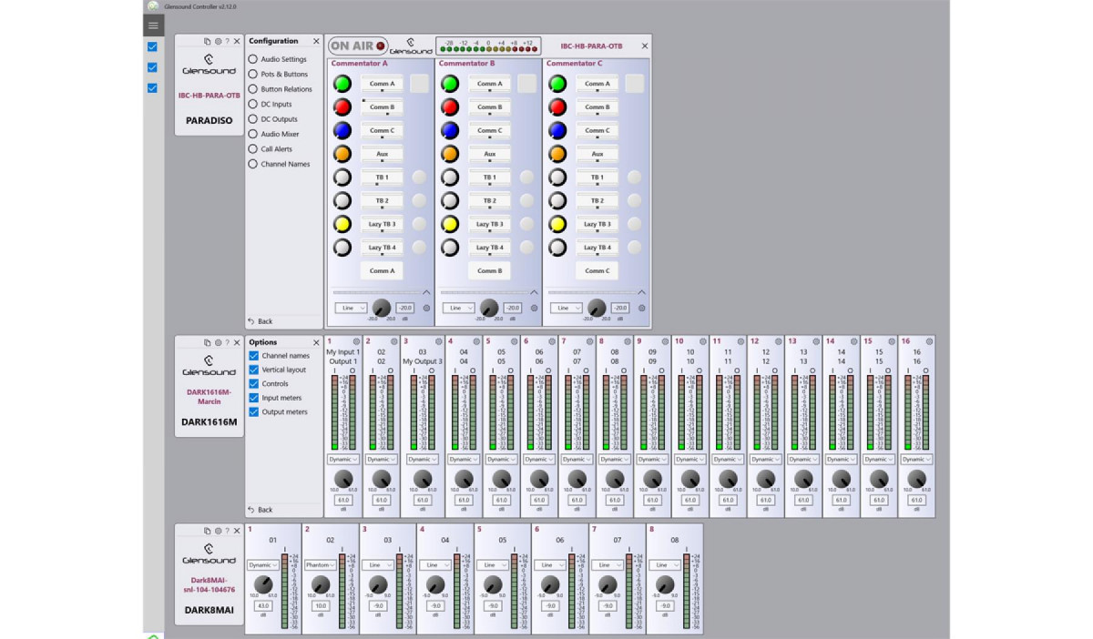 All compatible devices can connect to multiple GlenControllers simultaneously, meaning that several operators in your workflow can access a device and see its levels, gains etc at the same time.