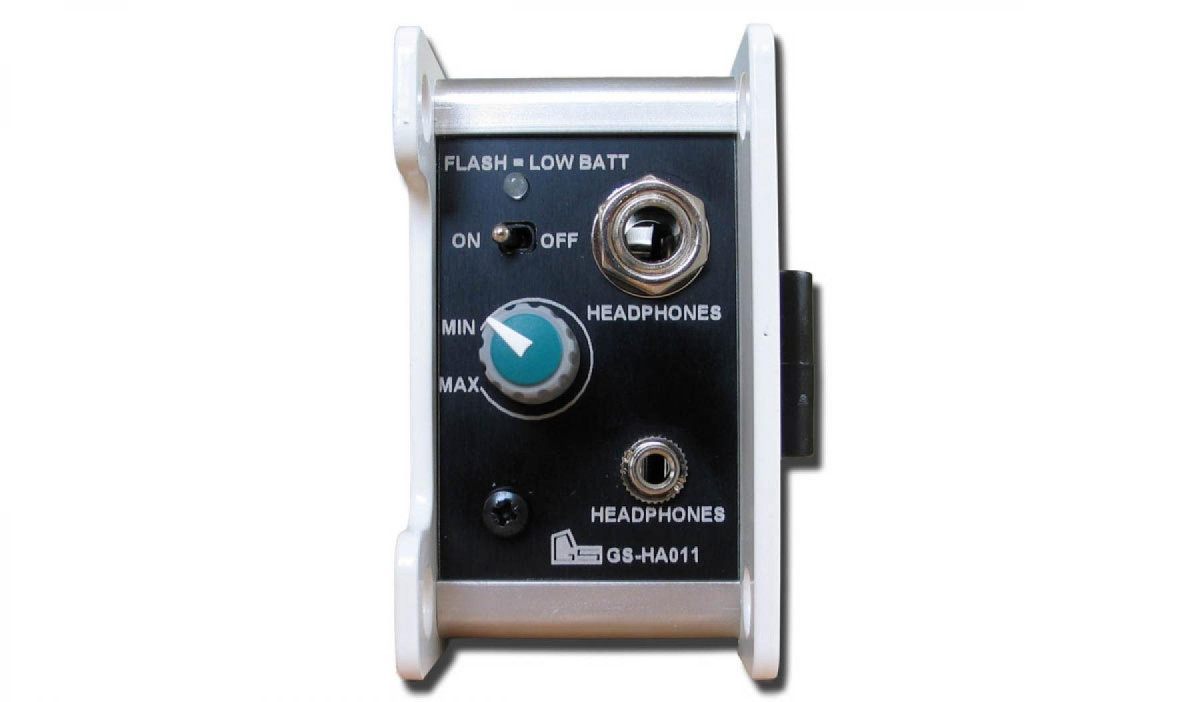 Audio input is transformer balanced with recessed adjustable gain control. Input connection is via XLR with a loop through XLR output. Two headphone sockets are offered, 1 on 6.35mm and the other on 3.5mm. These are wired tip & sleeve to allow connection of regular stereo headphones (with audio on both ears) or a single ear piece. There is a volume control for adjusting level to 32-1000ohm impedance headphones.