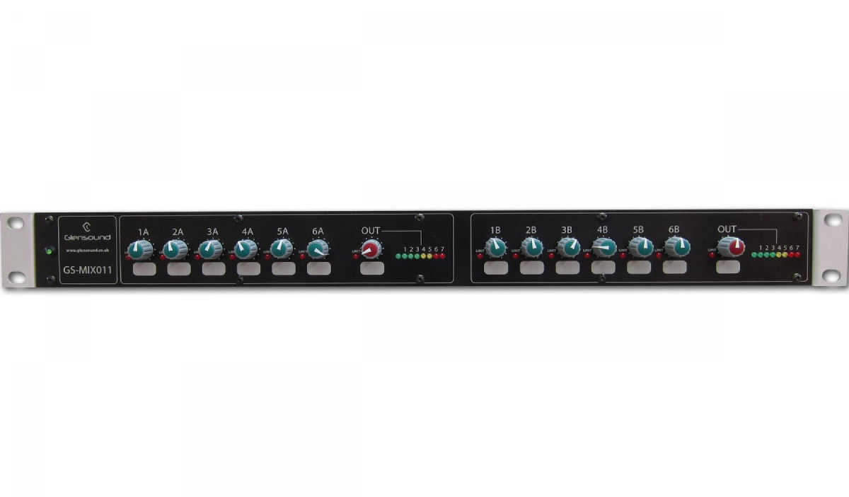 The GS-MIX011 was designed to meet the requirements of one of our customers who needed to produce two nice clean sounding mixes one for internet broadcast and another for communication. His sources were such things as a referee's mic and international sound all of which arrived at his mix point in a very unregulated format covering a wide dynamic range. These 2 mixes were not our clients main job at the event and therefore the mixer had to be capable of being very quick and easy to operate as well as of course being highly reliable.