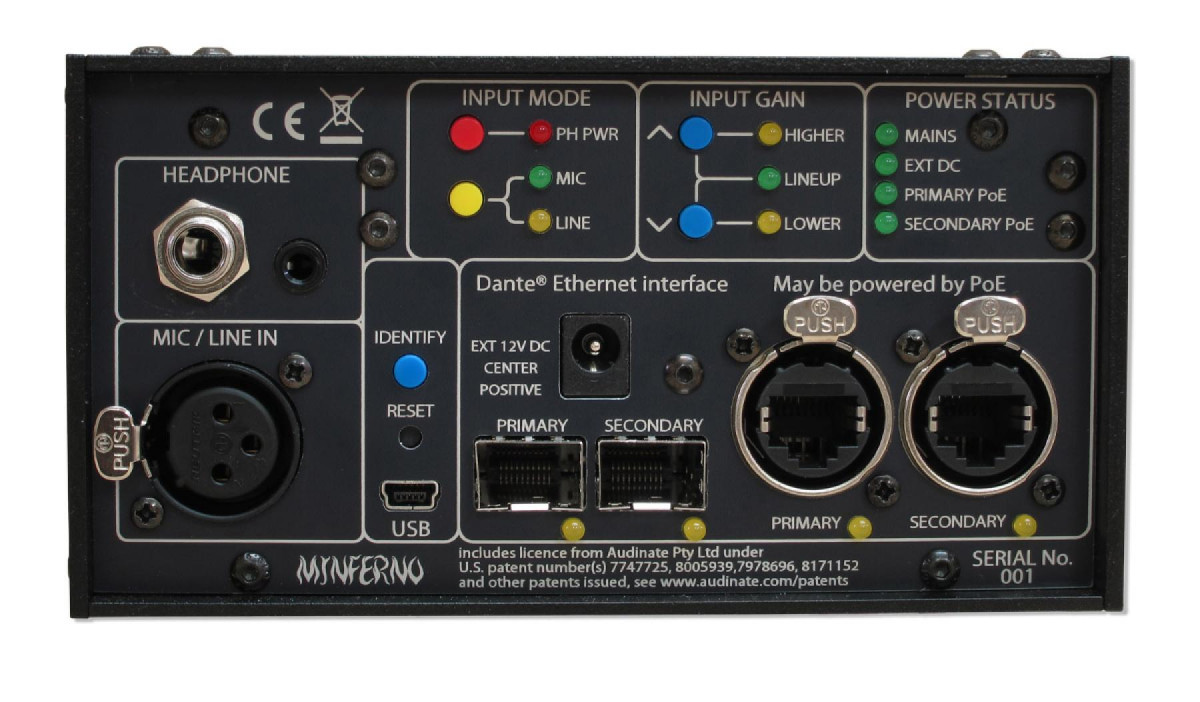 Can connect to any Dante compatible network Single low noise mic/line/48V input