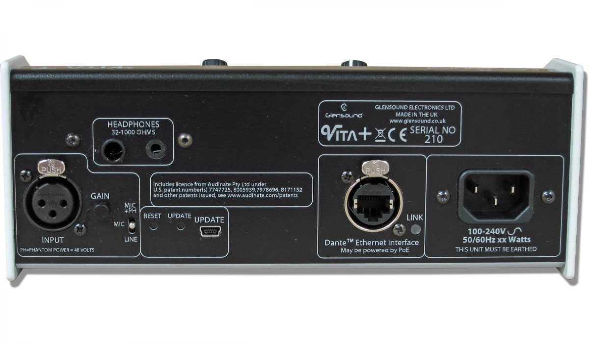 The Vita Plus can connect to any Dante network, or to other audio equipment via Glensound’s own Dante interface units.